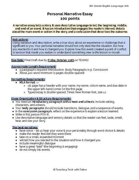 Read narrative essay 6th grade Doc